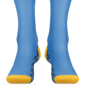 Custom Blue and Yellow Soccer Socks – Breathable Stretch Knit with Cushioned Footbed, Secure Fit Cuff, and Full Team Customization by QEOK