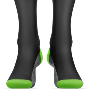 Custom Black and Neon Green Soccer Socks – Breathable Stretch Knit with Cushioned Sole, Secure Fit Cuff, and Complete Team Customization by QEOK